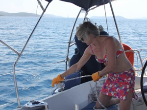 ...mais avant, il faut tirer des bords dans la baie winch tribord...